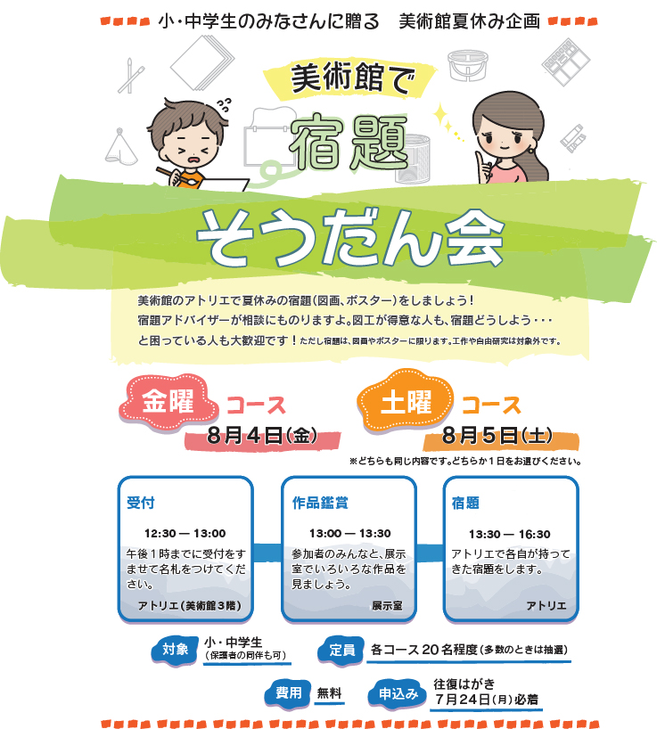 美術館のアトリエで夏休みの宿題(図画、ポスター)をしましょう【申込が必要】