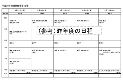 2019年度の博物館実習の受け入れは次の通りです。