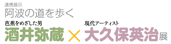 本展では、酒井弥蔵とその旅の足跡、旅日記等の資料、さらには阿波の街道、遍路道などに関する歴史・民俗資料と、大久保英治が弥蔵の足跡や阿波の街道、松尾芭蕉の『笈の小文』などをテーマとして制作した美術作品をあわせてご紹介します。