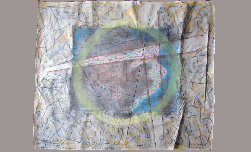「歩く」現代アーティスト。松尾芭蕉をはじめ、空海や木喰上人を思い、その足跡を歩いて作品を制作してきた。「その思いと同じ人(弥蔵)がここにいる、と知って嬉しくなりました(大久保英治)」