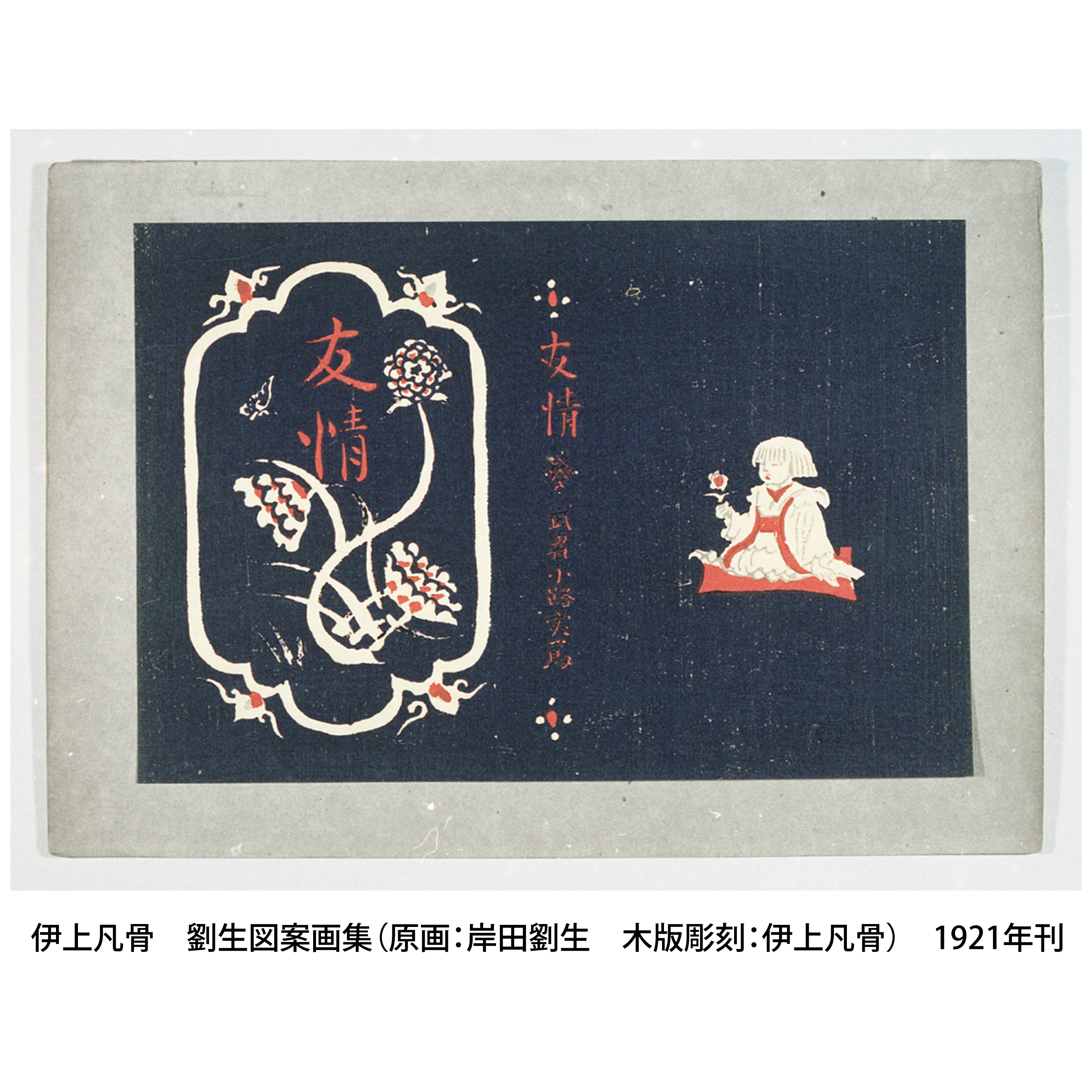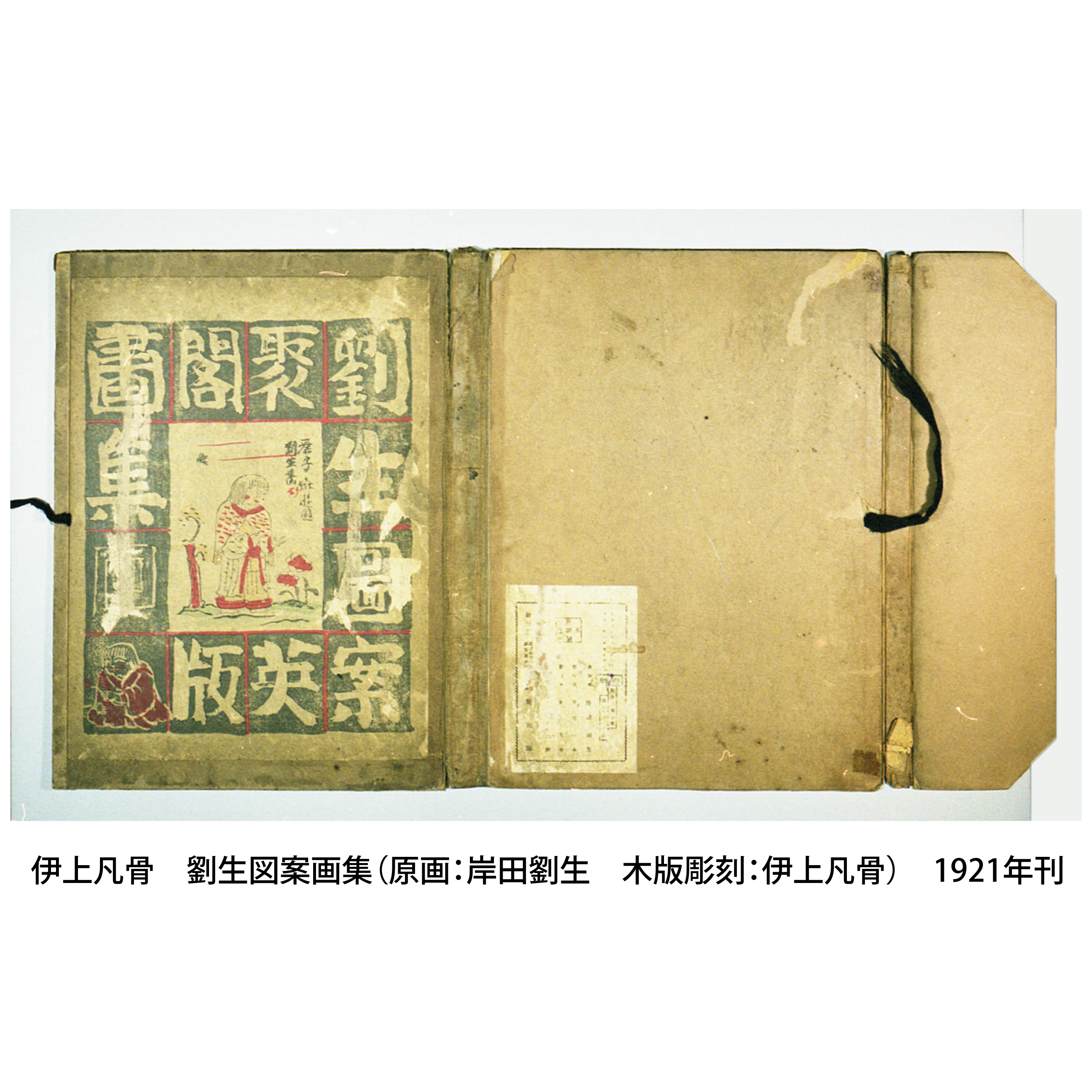 洋画家・岸田劉生による、小説家・武者小路実篤らの著書の装丁の図案や大正時代の雑誌『白樺』の表紙を集めた〈劉生図案画集〉(1921年刊)。徳島の彫り師、伊上凡骨が参加しています。
