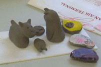 今回は、土で土笛を絵の具と石ころでお地蔵さんを
