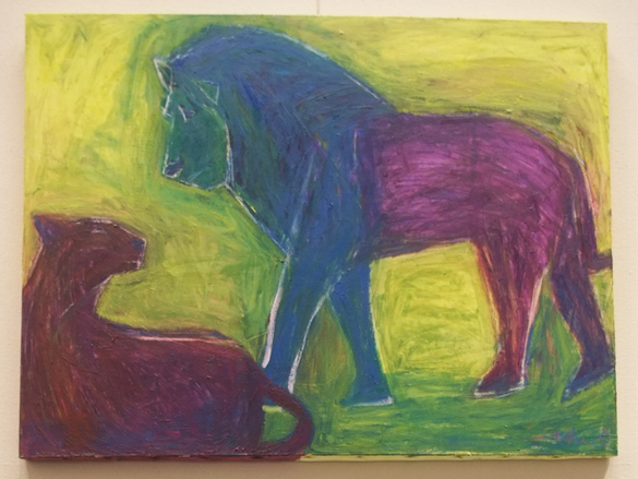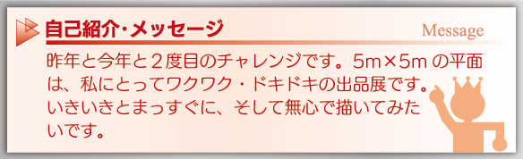 今まで扱わなかったモチーフに挑戦し、描き方も思い切った抽象化と力のこもった表現をした。