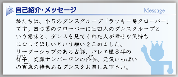子供たちだけで考える中から生みだされる良さがあった。テクニック的にはまだまだのびしろがあるが、ダンスの楽しみ方から純粋さが感じられた。