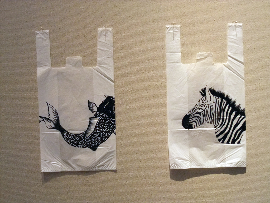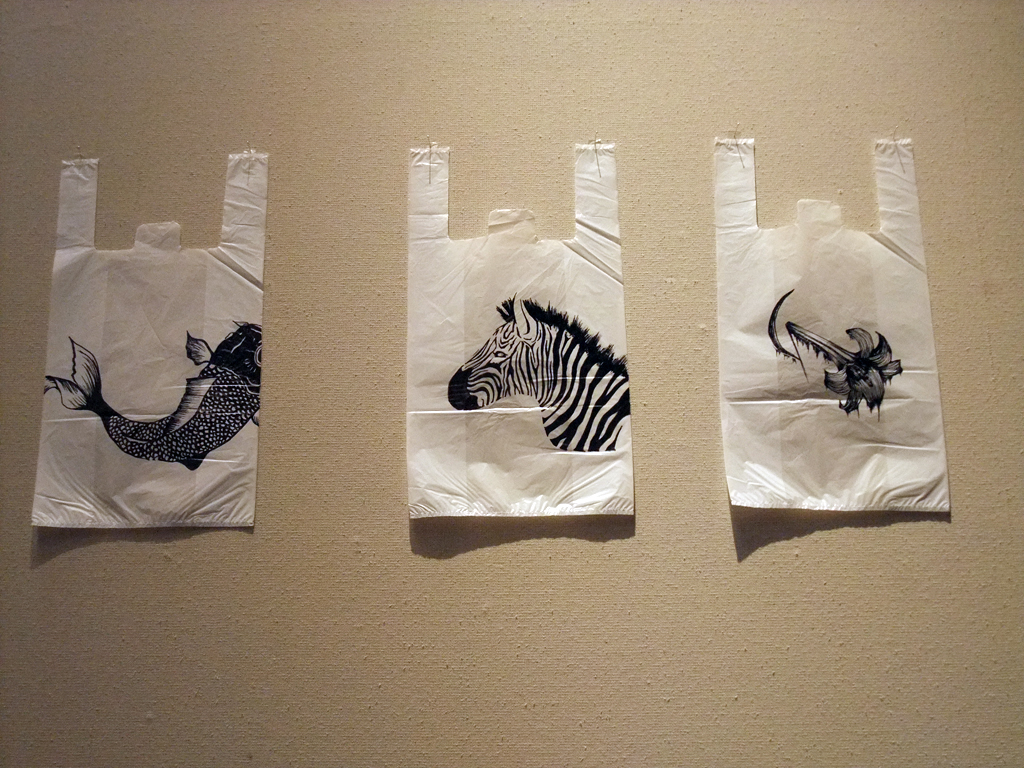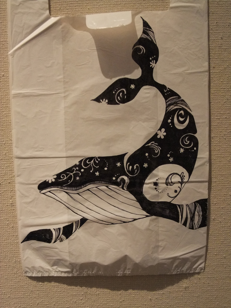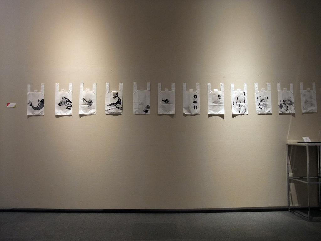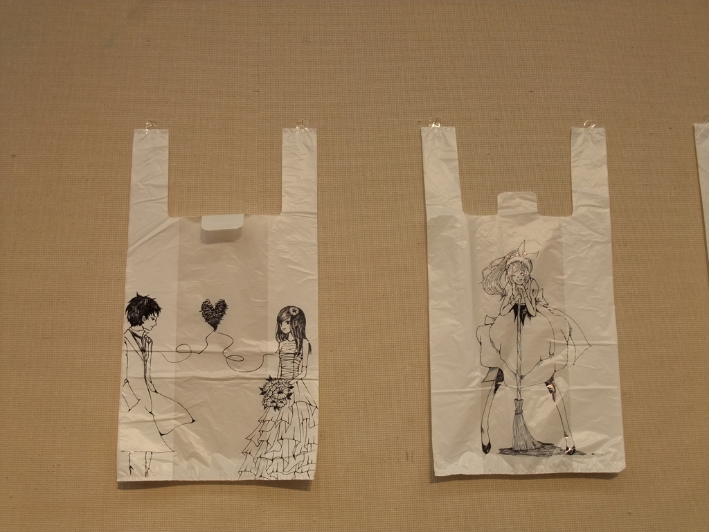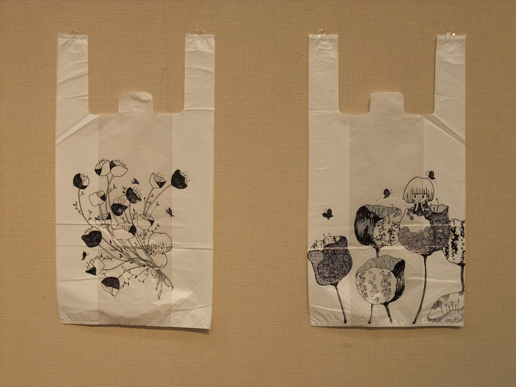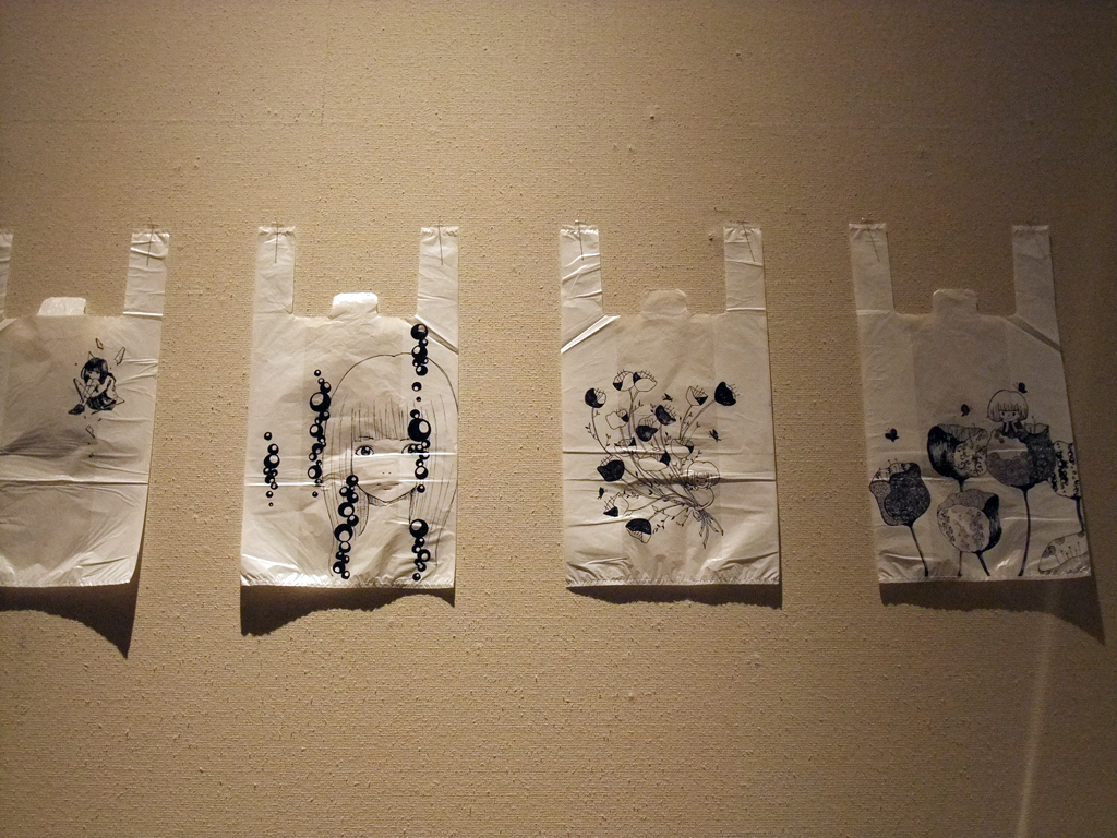日常と接続性のある捨てられてしまうレジ袋を、支持体として新しい価値を与え、エコ活動としての発展性も期待できる。