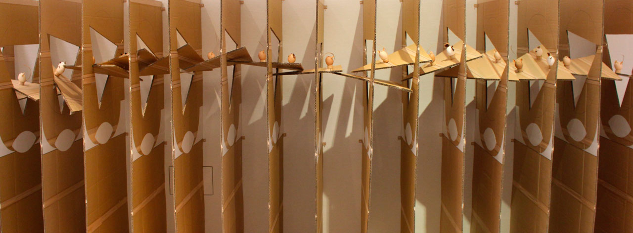 紙(ダンボール等)卵殻等の組込・接着、着彩