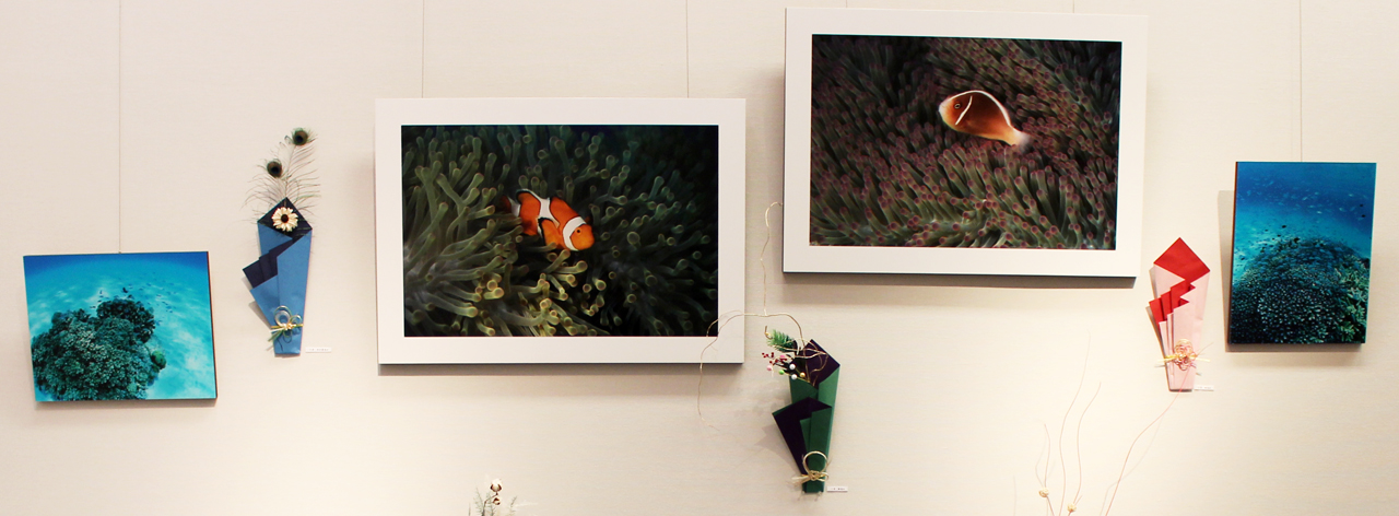 二次元の作品(写真)と三次元の作品(いけばな)のコラボレーション。新春に相応しい作品に仕上げました。