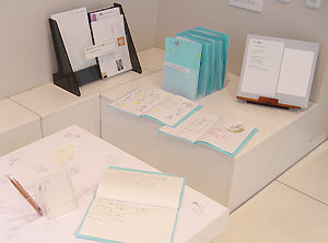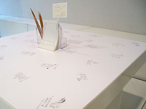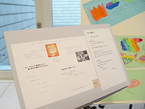 この単元の軸として使われた「鑑賞シート」を、展示の道しるべにしました。濱口先生による活動紹介のテキスト「クレー日記」も素敵です。 |