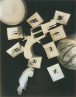また印画紙の前に物を直接置いて、光を当ててつくる方法(レイヨグラフ)(図版2)や、暗室作業中に、照明をつけて光を当てることで、黒くなるべき部分が白くなったり、輪郭が黒くなったりする効果をだす方法(ソラリゼ-ション)(図版3)も工夫しています。光と影が生み出す驚異とポエジー。まさしく、光線/人間=マン・レイの面目躍如といったところです。 | |||||||