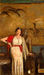 出品作品には印象派との区別がつきにくい作品も少なくありませんが、たとえばドニの<赤いベッドに横たわる裸婦>(1898年)は、赤い色面が画面全体を圧倒的に支配しています。それは装飾的であると同時に、赤に込められた象徴的な意味を示唆するかのようです。実際には、これほど真っ赤な寝室は考えにくく、まずありえない光景なのかも知れません。しかし、それは画家の心の中には確かに存在する現実なのです。 また、ヴュイヤールの<フレシネ夫人>は、奥行きの少ない平面的な面の配置によって画面が構成されており、背景の水墨画のような鳥のモチーフとともに、日本の影響(ジャポニスム)を思わせます。西洋にない空間構成が取り入れられています。