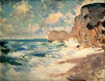 モネの<エトルタの波の印象>(1885年)は、セーヌ川河口のル・アーヴルの北に位置するエトルタの海岸を描いています。モネが好んで何度も描いた断崖の風景です。一見してぼんやりと輪郭がはっきりしていません。ここでのポイントは色であり空気感です。風景は刻一刻と変化します。それを、そのまますばやく捉えようとした結果なのです。 しかし、私達が現実に眼にしているのは、理想化された姿ではありません。そこで印象派の画家たちは、そんな規準には従わず、見えるがままの光や揺れ動く自然の姿を描こうとしたのです。ルノワールや、ピサロ、シスレーなどの作品の、水や植物、人間の肌の色は、緑、青、赤などがあまり混色されずに塗られています。混ぜることによる色の濁りをさけ、明るさを獲得しました。また、すばやく豊かな筆触も特徴となっています。 ゴーギャンに影響を受けた若手作家の集まりです。印象派同様に色彩を重視しましたが、その特徴は、色の点や筆触ではなく、色の面で構成することにあります。