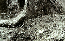 アトリエのある岩手県・遠野の山で体験した風景を、鉛筆だけで緻密に描いていきます。新作は、縦が3m横が4mの大画面です。