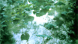 雨上がりの木の葉から落ちるしずくが、池に波紋をつくる様子など、何気ない風景のなかで起こる「小さなドラマ」を描き出します。出身地・徳島に取材した作品も展示します。
