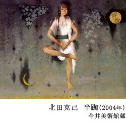 展覧会の最後には、二一世紀に入ってからの作品も何点か展示しました。北田克己[左上]、岩崎絵里[右上]、髙島圭史の作品です。日本の絵画が、明治以来取り入れてきた西洋の表現を、無理なく自分のものにし、また、伝統的なものを、近代「日本画」の成果や考え方の枠に限定されずに探求できる、そんな自由さを、戦後生まれの作家たちの人間表現に見ることができるのかも知れません。